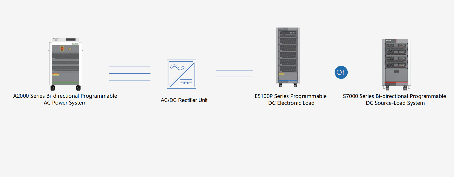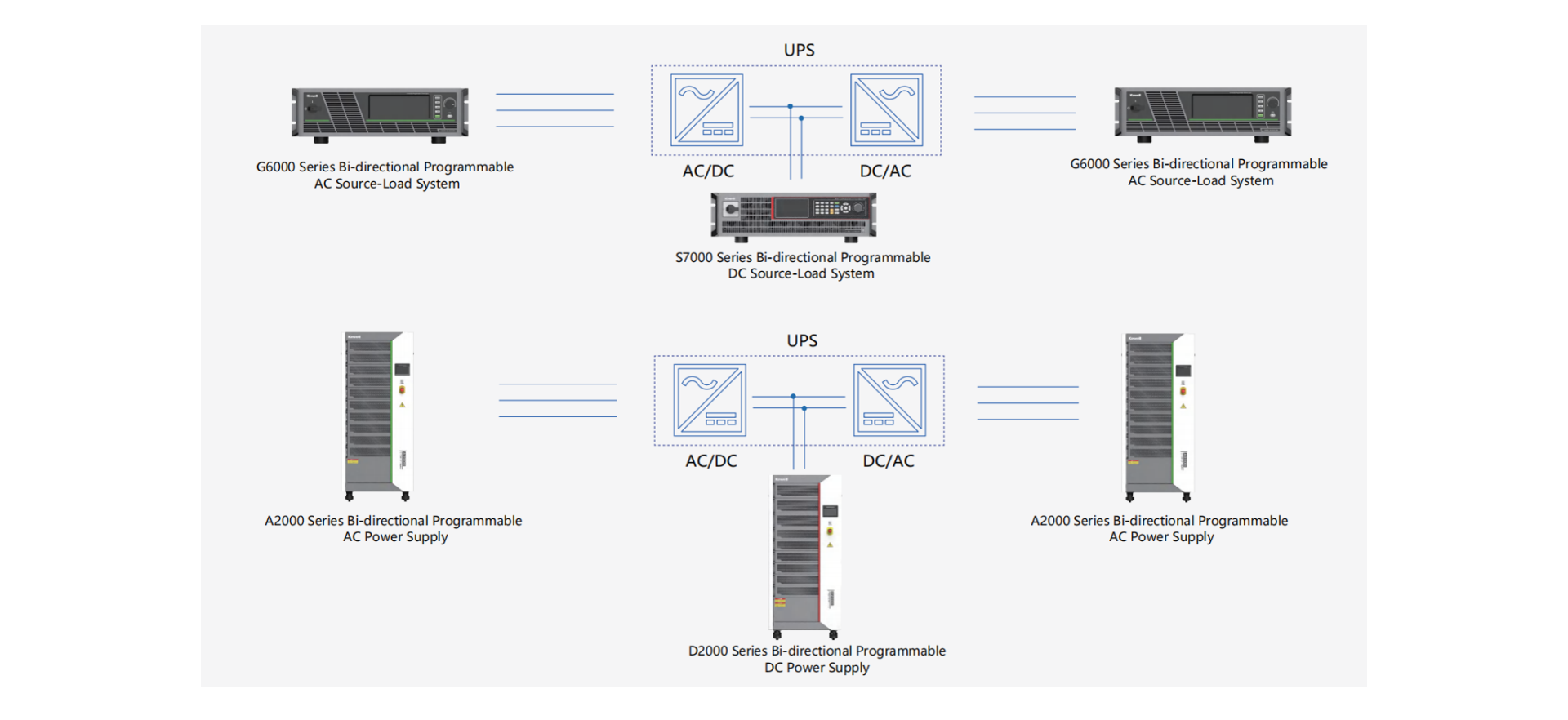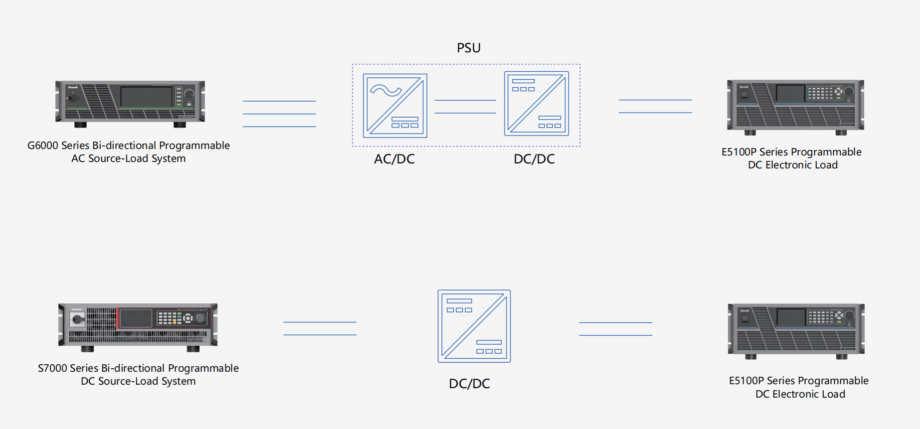Kewell empowers AI server power testing with a one-stop solution, precisely targeting three key areas: DC conversion and basic power supply modules, centralized power supply rack systems, and BPS and UPS systems. By integrating AC/DC power supplies, loads, and automated test systems, we build highly efficient test platforms. This helps customers significantly boost testing efficiency and solidify the foundation of product reliability.
