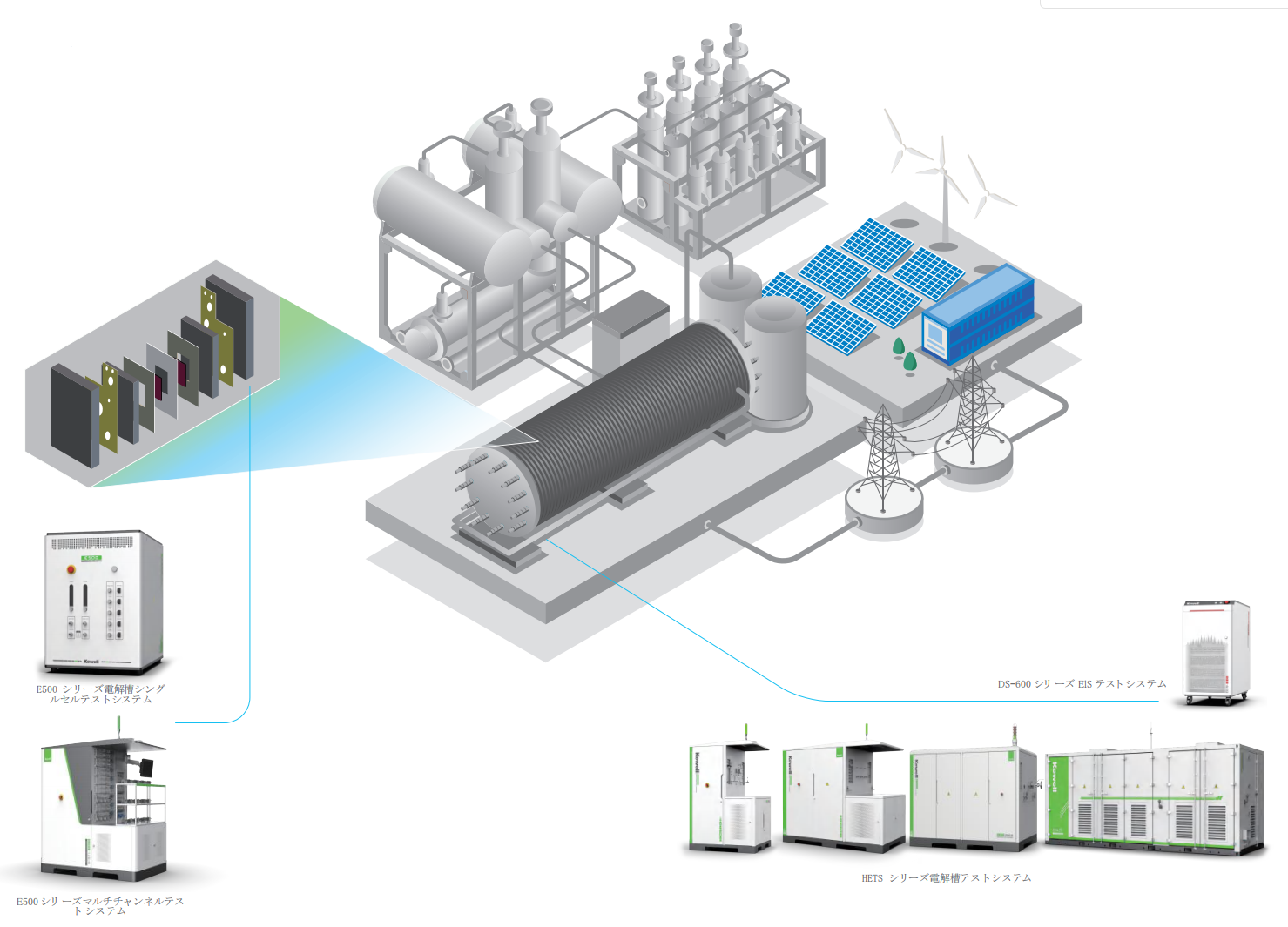電解装置のR&D、EOL試験、および第三者検証をより効果的に支援し、その効率性、安全性、および耐用年数を確保するため、Kewellは性能、信頼性、耐久性に焦点を当てた試験ソリューションを提供し始めました。