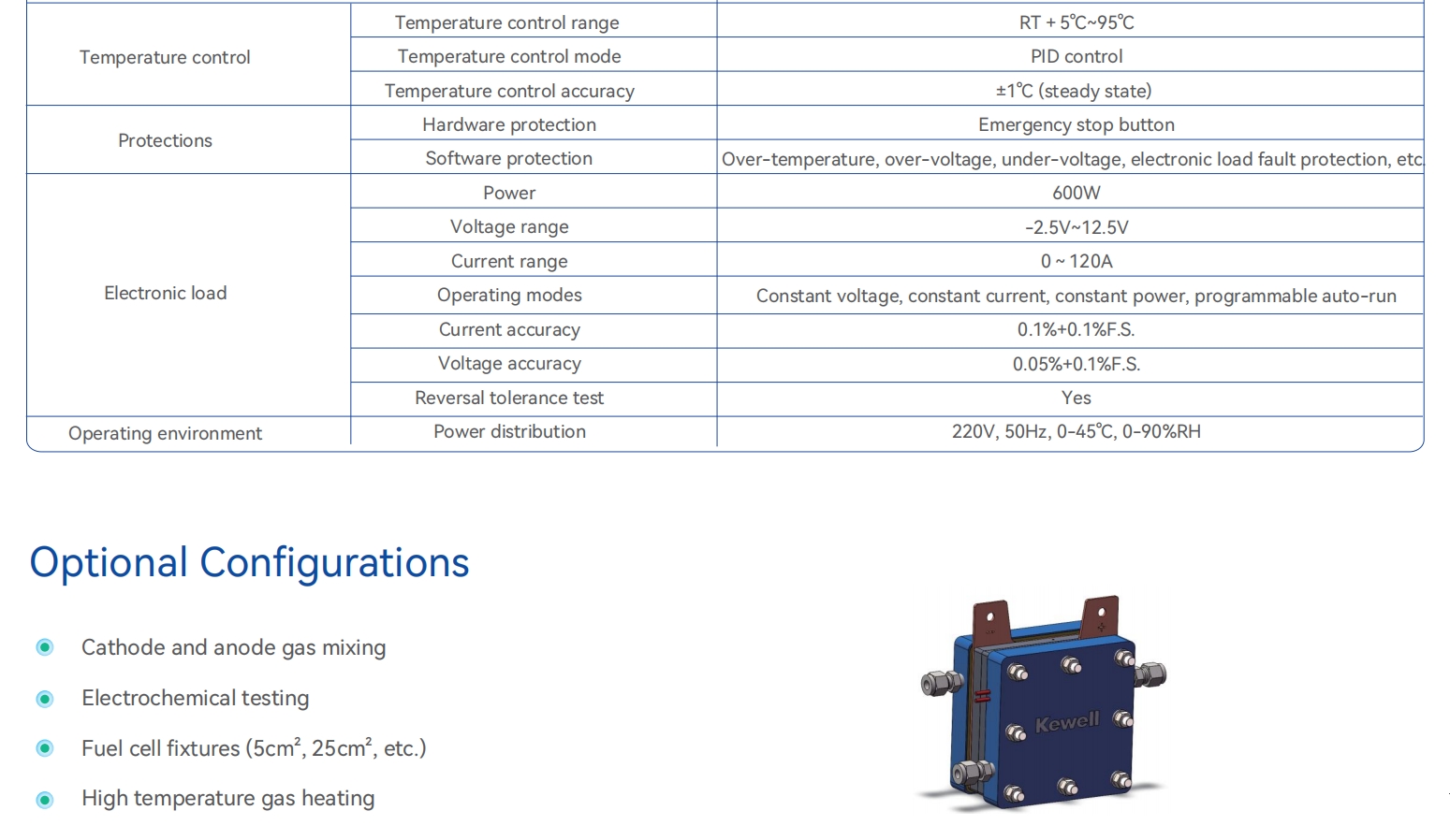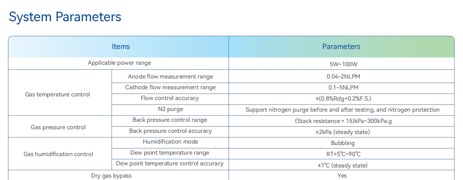 C100シリーズ燃料電池セル試験台は、燃料電池及び関連材料の試験向けに高精度・高安定性の試験プラットフォームを提供しています。本試験台は主に、ガス流量・圧力制御ユニット、ガス温度・湿度調節ユニット、計測制御ユニット、安全保護ユニット、電子負荷装置で構成されています。専用ソフトウェアとの統合により、オンライン測定、自動スクリプト作成、マルチウィンドウグラフィカル表示、各種パラメータの自動監視などの機能を実現できます。燃料電池材料の研究開発企業、燃料電池メーカー、大学、研究機関、第三者機関による燃料電池材料・部品・単電池の試験に適用可能です。